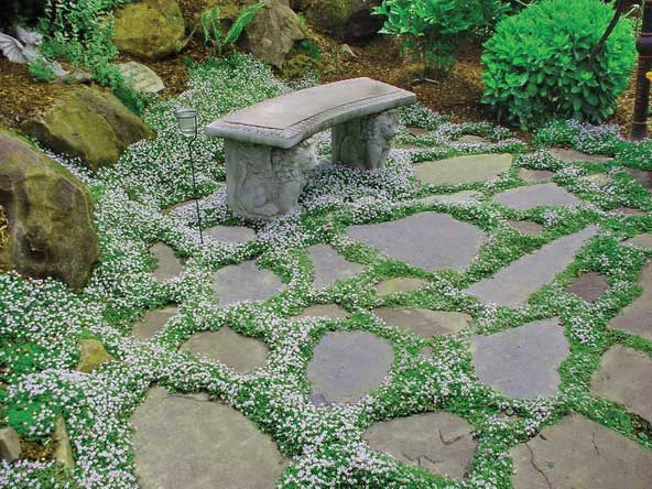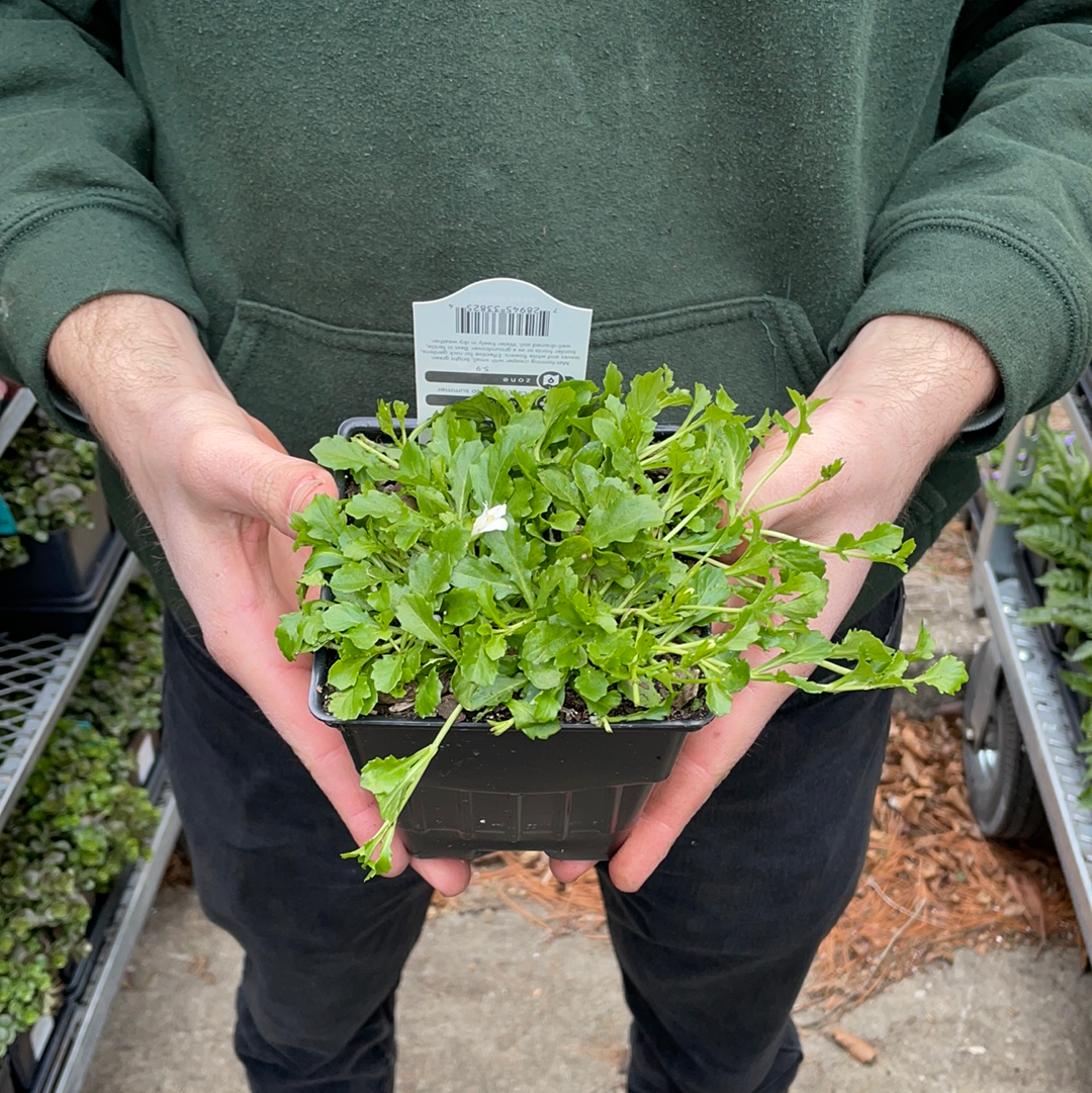 Mazus is a family of showy ground covers that only grow to be about 2" tall. Albus features intricate white flowers that resemble flies or insects. Noted for being extremely floriferous in the early spring, it remains green and dense throughout the growing season and well into the fall.