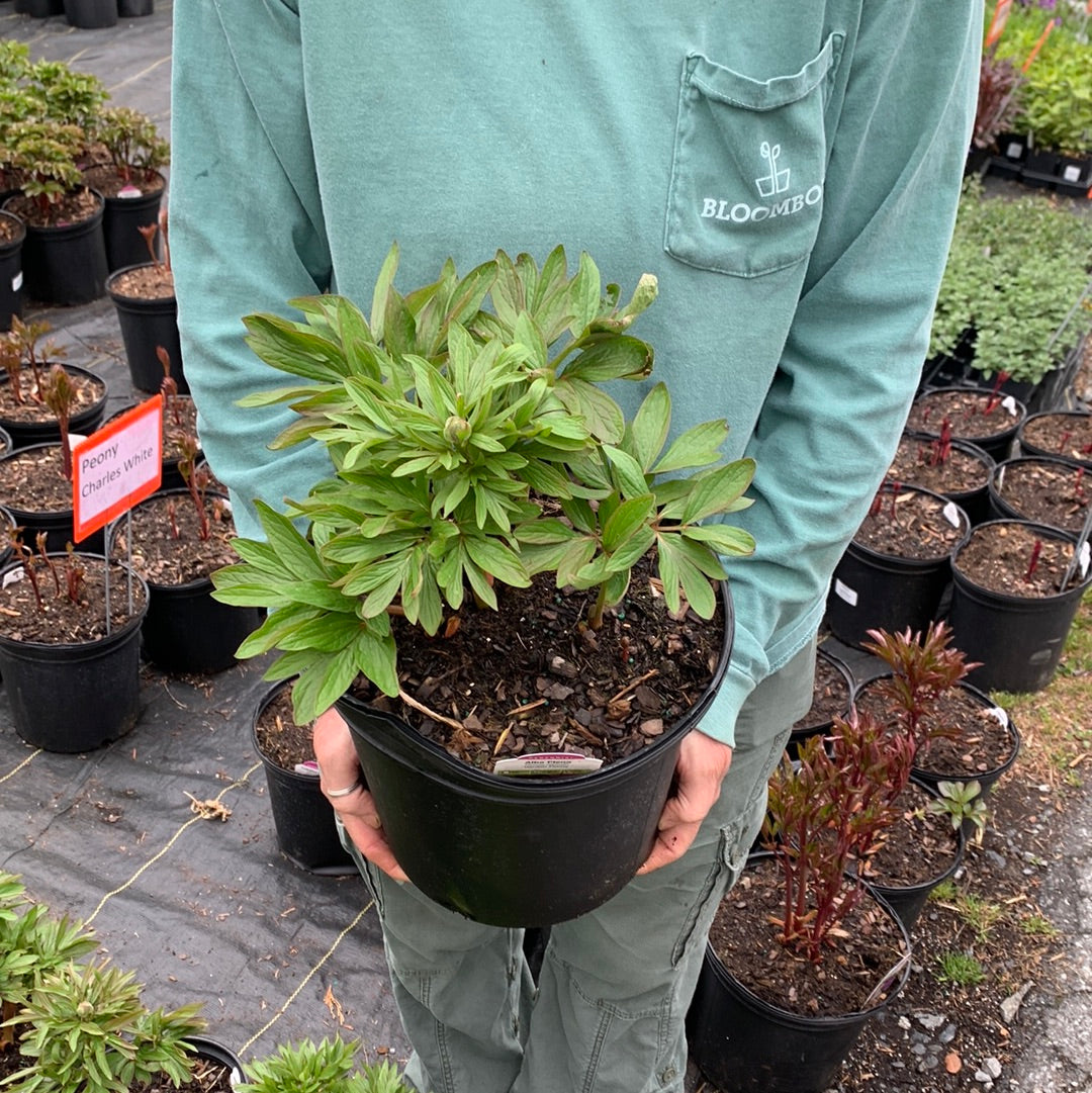 BloomBox Peonies are fully planted in 2-gallon pots with 3-5 eye divisions. Peonies will be flushing out between 6" and 20" tall upon delivery, as shown in last photo.