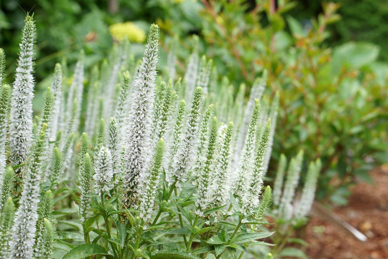 Commonly known as Spike Speedwell, this herbaceous perennial is a bushy, clump forming variety that offers tiny, white star-shaped flowers. Flowers bloom on spikes above foliage and start from the base upward. Expect blooms from early to late summer.