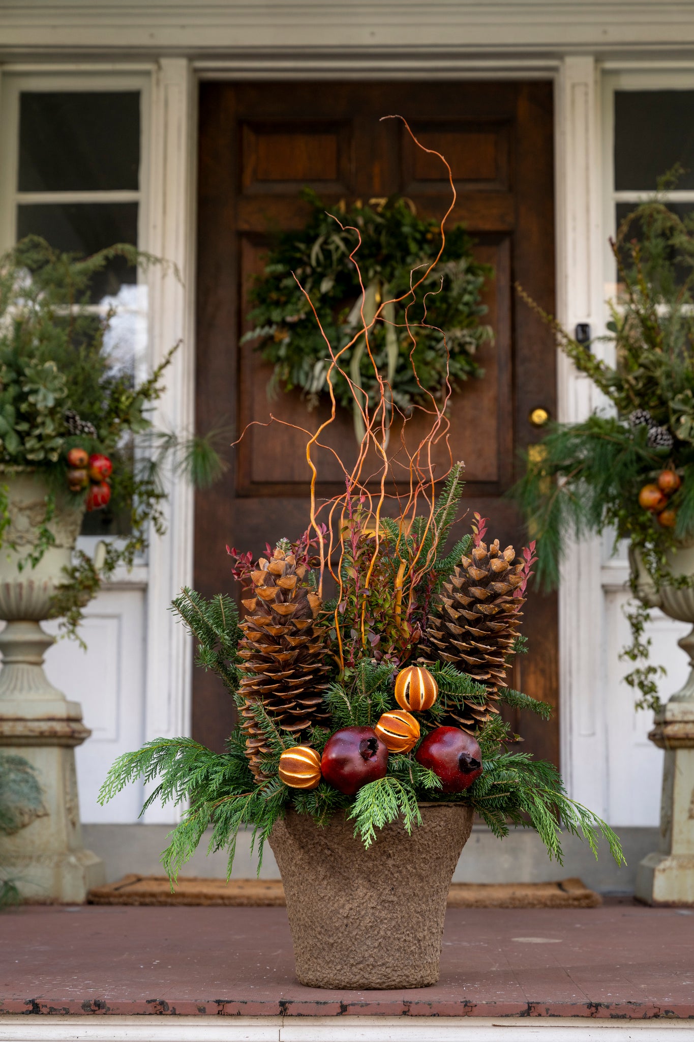Greens and branches are arranged into a 12”x12” compressed pulp pot that will last for seasons either inside your own planter, or sitting directly on your porch or deck. All you need to do is water it a few times throughout the season for greens that will last until spring.