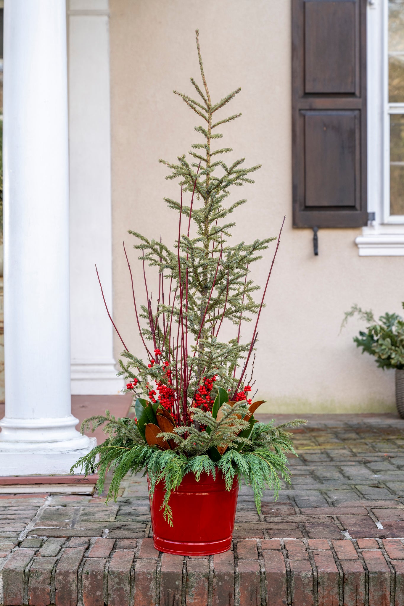 Grand Christmas is completely potted, arranged and ready to go! All you need to do is water this pot a few times throughout the season.